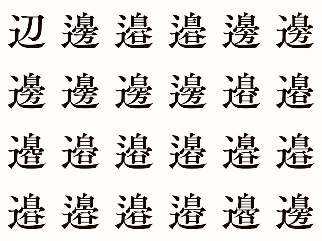 また、シンニュウ、しんにょう篇に点が2つのものも存在します。だからと言って中国の簡体字:厂(がんだれ)だけのようなものは嫌ですね。